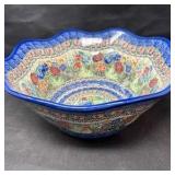Lot #235 - Hand-Blown Art Glass Bowl Blue & Aqua Swirl with Controlled Bubbles