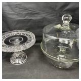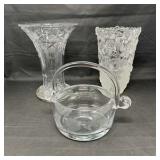 Lot #186 - Vintage Clear Cut Glass Basket Lot (3) Pressed & Etched Handled Compotes