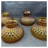 Lot #26 - Set of 4 Vintage Amber Glass Lamp Shades Ruffled & Hobnail Pattern