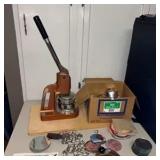 Lot #85 - Vintage Button Maker Press w/ Dies, Pin Backs, Mirror Backs, Keychains & Supplies