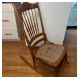 Lot #53 - Vintage Wooden Rocking Chair with Needlepoint Seat Cushion