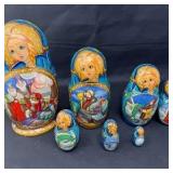 Lot #188 - Hand Painted Russian Nesting Dolls (7) Matryoshka Winter Folk Scenes