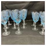 Lot #174 - Set of 13 Fostoria Navarre Etched Blue Goblets 8 Large + 5 Smaller