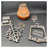 Lot #33 - Vintage Metal Wall Decor and Terracotta Vase Lot