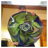 Lot #236 - Large Holman Studios Hand Blown Art Glass Bowl Platter Signed 26 Blue Green Swirl