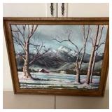Lot #96 - Framed Winter Mountain Landscape Painting Original on Canvas (16 x 20)
