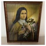 Lot #95 - Framed Religious Art Print Saint Th鲨se of Lisieux w/ Roses & Crucifix