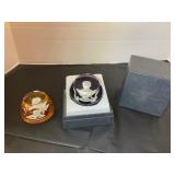 New Year, New Finds Part 2 bronze sculpture titled "The Mountain Man" by Frederic Remington Signed Scott Hartley Art glass paperweight three-tiered (stacked) millefiori art glass paperweight. Mayflower Glass HMS Victory ship in a bottle. Mayflower Glass Viking Longship in a glass bottle GIFU Enamel Jeweled, hinged, trinket box with magnetic closure Bombay Company brass frog desk set. It includes a trinket box, a magnifying glass, and a letter opener Raikes Bears—A Robert Raikes original Robert Raikes “Andrew” rabbit plush Glass ship in a bottle, “Nina 1492” Glass ship in a bottle “Santa Marie 1492” Hand crafted glass sculpture of the “Mayflower” ship Capodimonte porcelain figurine of a boy playing an accordion blown glass sculptures on a natural driftwood bases Twist Frosted Egg Shaped 6” Glass Paperweight Twist Frosted Egg Shaped 5” Glass Paperweight cobalt blue cut to clear diorama inscape tree of life 4.5” art glass paperweight Jellyfish Art Glass 5” Paperweight—UV Reactive art glass vase designed by Josef Hospodka for Chribska Glassworks Jellyfish Art Glass 7” Paperweight—UV Reactive Jellyfish Art Glass 6.5” Paperweight—UV Reactive Jellyfish Art Glass 6” Paperweight—UV Reactive Jellyfish Art Glass 6” Paperweight Jellyfish Art Glass 6” Paperweight—UV Reactive Jellyfish Art Glass 5.5” Paperweight—UV Reactive Jellyfish Art Glass 5.5” Paperweight—UV Reactive round clear glass controlled bubbles paperweight 4.5 x 4.5” Art Glass 4” Paperweight Art Glass 4” Paperweight Karg Studio Art Glass Signed Glass 3” Paperweight Scott Hartley Christmas tree blown glass 5.5” paperweight—Signed Pair of Art Glass Paperweights Pair of Art Glass Paperweights Pair of Art Glass Paperweights Trio of Clear Art Glass Paperweights with controlled bubbles Two Art glass paperweights—Murano style Trio of owl themed paperweights Punch Studio Crystal Dome Monogram Paperweights Reverse Cut 7” Obelisk and a 5.5” tall Three glass paperweights Baccarat crystal paperweight featuring Woodrow Wilson Baccarat crystal paperweight featuring Andrew Jackson Baccarat for The Franklin Mint "Cameos in Crystal" Baccarat for The Franklin Mint "Cameos in Crystal" Baccarat for The Franklin Mint "Cameos in Crystal" Baccarat for The Franklin Mint "Cameos in Crystal" Baccarat for The Franklin Mint "Cameos in Crystal" Baccarat for The Franklin Mint "Cameos in Crystal" Baccarat for The Franklin Mint "Cameos in Crystal" Baccarat for The Franklin Mint "Cameos in Crystal" Baccarat for The Franklin Mint "Cameos in Crystal" Baccarat for The Franklin Mint "Cameos in Crystal" Glass laser engraved SpongeBob with light box Glass laser engraved Peter Pan with light box and damaged box Glass laser engraved New York Jets, has damaged box Glass laser engraved “Support our Troops” and “God Bless America” Glass laser engraved “God bless America”, “Support our Troops” and another Glass laser engraved palm trees and cats Glass laser engraved “Green Valley Ranch” and “Genesis 8:11” Glass laser engraved “elephant” and “wolf/coyote” Glass laser engraved “scorpion” and “eagle” 4 Chevron commemorative model diecast metal replicas 4 Chevron commemorative model diecast metal replicas 3 Chevron commemorative model diecast metal replicas Ertl 1913 model T Delivery bank New York State Expo Limited Edition 2 Texaco Collectors Club die cast vehicles 2 Texaco Collectors Club die cast vehicles 3 Ertl metal vehicle banks 2 Ertl metal vehicle banks 2 die cast vehicle banks 2 die cast vehicle banks 2 die cast vehicle banks 2 die cast vehicle banks 2 NZG Modelle scale CAT equipment pieces and a Norscott CAT dumptruck Vintage Robert Raikes, signed, Alec 1992 Limited Edition Bear Rare Johnathan the owl by Robert Raikes Puddles and Patty by Robert Raikes Signed Robert Raikes Cupid Betsy Ann and a signed Vincent Jr. by Robert Raikes Cabbage Patch Doll in original box Precious Moments 15” Doll Wood 14” Doll - "Welcome to This Dirty House"-in box Two Brinns Collectible 12” Dolls Two Brinns Collectible 12” Dolls Two Brinns Collectible 12” Dolls Two Brinns Collectible 12” Dolls Sew-Mistress Sewing Machine M&M's Millennium 2000 special edition collectible candy dispenser M&M's "Freedom Rider" motorcycle candy dispenser M&M's "Wild Thing" roller coaster candy dispenser M&M Character Candy Dispenser, 1991 M&M's blue character saxophone candy dispenser M&M Candy Dispenser: Mulligan's Golf Collectible, 1999 M&M Candy Dispenser: Mulligan's Golf Collectible, 1999 M&M Limited Edition "Rebel without a Clue" Candy Dispenser M&M Limited Edition "Rebel without a Clue" Candy Dispenser M&M's "Sweet Wheeling" candy dispenser red M&M's "Sweet Wheeling" candy dispenser blue M&Ms Collectibles Coca-Cola hot dog steamer New in box Coca-Cola Tabletop Jukebox in box Coca-Cola Tabletop Jukebox no box Coke Brand Vending Machine AM/FM Radio, in box Coca-Cola Vending Machine Bank, in box Vtg Coca Cola Mini Vending Machine 1996 Musical 7.5” Bank 1994 Enesco Coca Cola Vending Machine Diecast Musical Bank Coca-Cola Polar Bears musical figurine from the Heritage Collection Coca-Cola Spring Billboard musical banks Assortment of Coca-Cola Collectibles Assortment of Coca-Cola Collectibles Seven Enesco Polar Kins USMC Marine Corps Boot Camp Bears from The Hamilton Collection's USMC Marine Corps Boot Camp Bears from The Hamilton Collection's USMC Marine Corps Boot Camp Bears from The Hamilton Collection's miscellaneous items in lucite miscellaneous floral items in lucite Lucite obelisks Lucite obelisks Lucite water life pieces Bejeweled enamel trinket boxes Bejeweled enamel trinket boxes Bejeweled enamel trinket boxes Bejeweled enamel trinket boxes Bejeweled enamel trinket boxes Bejeweled enamel trinket boxes Bejeweled enamel trinket boxes Bejeweled enamel trinket boxes Bejeweled enamel trinket boxes Bejeweled enamel trinket boxes Bejeweled enamel trinket boxes Bejeweled enamel trinket boxes B