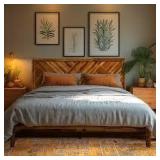 Gonsoulin QUEEN Solid Wood Bed Frame with Adjustable Headboard/Handcrafted Pattern Platform Bed