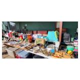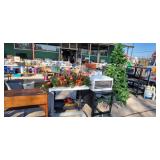 Items include, but are not limited to... Arm Chairs, antique dressing table, mirrors, bed frames, flat TV’s, hand tools, power tools, DVD’s/VHS movies, Singer treadle base, TV stands, wardrobe, storage totes, lamps, new in box (NIB) cookware, comforters, pet carriers, microwaves, book shelves, dining tables & chairs, crockpots, garden tools, hoses, computers, dressers, night stands, chests of drawers, desks, wheel barrow, fishing poles, ladders, various types of hardware, plastic patio chairs, Dr’s floor scale, fertilizer spreader, vintage Proto rolling tool box, gas cans, ice chests, water coolers, trash cans, sewing desks & machines, fire place tools, Commercial freezer, file cabinets, wall art, china cabinets, curio cabinets, ironing boards, garden sprayers, 16”x7” mag wheels, purses, boots, clothing, tools, books, CD’s, LP vinyl records, suitcases, blower, end tables, coffee tables, area rugs, camping gear, microwaves, small kitchen appliances, vacuums, ice buckets, rocking chairs, jewelry boxes, jewelry, baskets, tube radio, floor lamps, carpet cleaners, oriental dolls, picture frames, home stereo equipment , cedar chest, knives, belt buckles, sofa/hall tables, ranch oak, lighters, unicorns, baker’s racks, shop vac, shoe racks, Correlle Ware, Pyrex, milk glass, depression glass, Carnival glass, dual fuel Coleman stove, airbrush compressor, walkers, commodes, roaster, fish tank with stand, antiques and LOTS MORE!!!