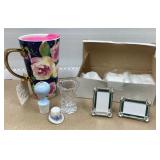 Also, home decor, home items, a Pyrex set, odds and ends, a nice pair of solid wood end tables, purses and more!