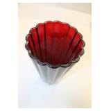 5095 - Amber Thumbprint Glass Bowl and Vase