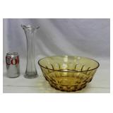 5095 - Amber Thumbprint Glass Bowl and Vase