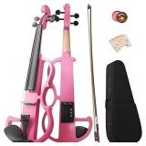Electric Violin 4/4 Kit,Full Size Beginner Violin for Adults,Students,with Case,Bow, Rosin,Headphones,and Connecting Line,Pink