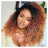 210 Strands Yanky Twist Crochet Hair Pre Looped 14 Inch Pre-twisted Fluffy Curly Braiding Hair Long Senegalese Twist Braids Brown Blonde Ombre Bohemian Crochet Braids for Black Women