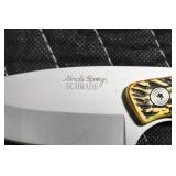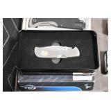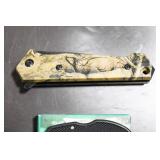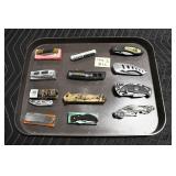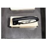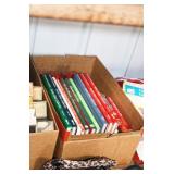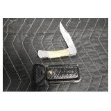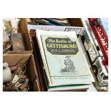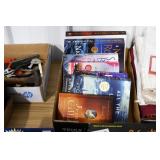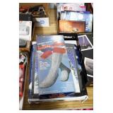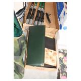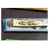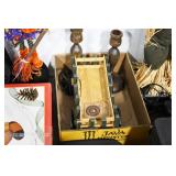 Antiques and Collectibles: (30) Longaberger Baskets of Various Sizes and Styles, Large Amount of Folding, Pen, and Sheath Knives, Knife Sets, Wade Whimsies Ceramic Figures, Vintage Childs Books, Childs Games, Bolo Ties, Belt Buckles, Belts, Ladies Vanity Set, Advertising Tins, Advertising Thermometers, Holiday Decorations, Brass Bucket, Display Cases, Flashlights, Men’s Hats, Vintage Hand Fans, Clocks, Marbles, Stamps, Vintage Tools, Calf Weaners, Meat Hooks, Glass Butter Churn, Vintage Scales, Pottery Crocks and Jugs, Singer Mod. 221 Portable Sewing Machine, Vintage Bells, Vintage Farm Equipment Manuals, Locks with Keys, Old Photographs, Large Amount of Porcelain Dolls and Doll Clothing, Postcards, Cal Ripken Jr. Bobble Head, Signed Baseball Bats, Signed Football, Large Amount of Framed and Unframed Prints and Pictures, Movie Posters, and Other