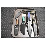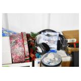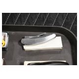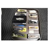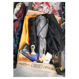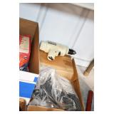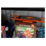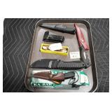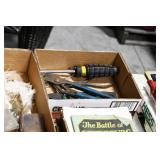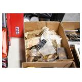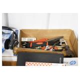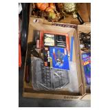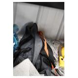 Tools: Spotlight, Drills, Drill Bits, Craftsman Stackable Boxes, DeWalt Batteries, DeWalt Saw, 3-Gallon Air Compressor, Hoses, Screw Drivers, Bungy Cords, Tool Sets, Portable Power Pack, Sockets, Propane Torch, Pliers, Wrenches, Saw Blades, Clamps, and Other