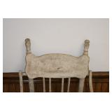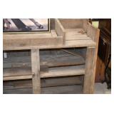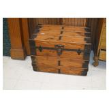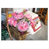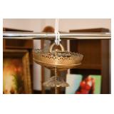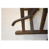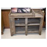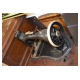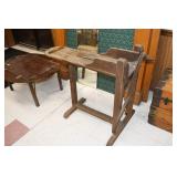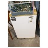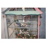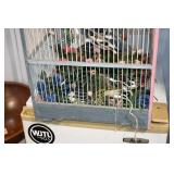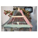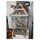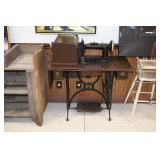 Furniture: Wooden Bowl Stand on 3 Legs, Painted Wooden Bird Cage, Mini Refrigerator, Wooden 3-Tier Stand, Wooden Fireplace Mantle, Flat Top Trunk, Straw Fotter Cutter, Treble Sewing Machine, Bookcase Secretary, Hamilton Beach Microwave Oven, Various Stands, Chairs, and Other