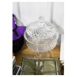 Antique Glassware: Large Amount of Lenox, Lefton, and Gorham Glass Lady Figurines, Glass Lamps, Glass and Other Salt and Pepper Shakers, Lenox Ornaments, Lenox Plates, Vintage Glass Bottles, Glass Ladies Bust Figures, Cherry Thumb Print Carnival Creamer, Art Glass Swans, Pepsi-Cola Glasses, Large Amount of Carnival Glass Dishes, Drinking Glass Sets, Chicken on Nests, and Other, Large Amount of Fenton Glass, Glass Shoes, Westmoreland Cat on Nest, Westmoreland Duck on Nest, Carnival Glass Turkey on Nest, Glass Figures, Blown Glass, Decorative Glass Vases, Glass Plates, and Other