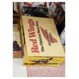 Antiques and Collectibles: (20) Longaberger Baskets of Various Sizes and Styles, (28) Various Wild Turkey Decanters, (4) Carved Wooden Canes, Pottery Crocks and Jugs, Pottery Planters, Roseville Pottery, (4) Jim Shore Angels, Griswold Dampers and Waffle Iron, Lamps and Lanterns, Petroleum Advertising Tins, Vintage Scales, Carved Wooden Figures, Winchester Roller Skates, Advertising Pinback Buttons, Miniature Cast Cannon, Vintage Holiday Cards, Vintage Bells, Miniature Cast Figures, Feed Bags, Car Plates, Woodware, Belt Buckles, Granite and Porcelainware, Copper and Brass Items, Old Photographs, World Globe, Vintage Tools, Vintage Egg Beaters, Hallmark Keepsake Ornaments, Vintage Advertising Signs, Vintage Maps, JFK Memorabilia, Crate Audio Equipment, Framed and Unframed Prints and Pictures, and Other