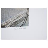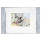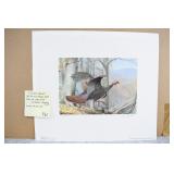 Prints #P41-50: P41. Framed & Double Matted PA Conservation Stamp & Print by George Losch – 1988 – #397/1300 – Signed by the Artist P42. Framed 1986 Conservation Stamp & Print “Keystone Classics” PA Wildlife Heritage Series Plate #1 by George Losch – #11/50 Framed AP P43. Framed Print “The Meadow” (American Woodcock” by George Losch – 1983 – #11/75 AP P44. Framed Print “Springtime Grouse” by Ned Smith – #128/900 – NSCNA P45. Framed Print “Deep Woods Drummer” by Ned Smith – #737/1069 – NSCNA P46. Framed Oil on Canvas Snow Scene Ruffed Grouse in Flight by Dan Christ – Back of Canvas in Hand Signed by Dan Christ & Dated 12-20-84 – Appears to be an Original! P47. Unframed Print w/Advertising “Monarch of the Forest” by Mark Twain Noe – Signed & #86/100 AP P48. Unframed Print “Sultan’s Glade” by Mark Twain Noe – Signed & #74/100 AP P49. Unframed Print “Reflecting His Majesty” by G. Harvey – w/Certificate of Authenticity & Sleeve – Limited Edition 22 Wide ¼” by 27” Tall P50. Framed & Double Matted Print “Keeper of the Cliffs” by Ned Smith – Signed & #569/600 – 25” Wide x 30 ¾” Tall