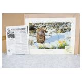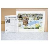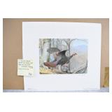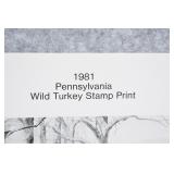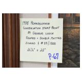 Prints #P61-70: P61. Unframed Print w/Portfolio & Stamp “Hillside Takeoff” 1981 PA Wild Turkey Stamp by Ned Smith – Signed & #1071/1500 P62. Unframed Print w/Portfolio “Punxsutawney Phil” (Ground Hog) by Jack Paluh – Signed & Dated 2/2/92 P63. Shrink Wrapped Print “Coming Home” (Eagle) by Gerald Putt – Signed & #252/600 – 21 ½” Wide x 29 ½” Tall P64. Shrink Wrapped & Matted Print “Allegheny Black Bear” by Jack Paluh – Signed & #152/450 P65. Framed & Double Matted Print “Sunset Woodcock” by Ned Smith – 16 ¼” Wide x 19 ¼” Tall P66. Framed & Matted Print “Woodcocks in Flight” by John F. Pritko – Signed & #79/375 – 29 ½” Wide x 22 ¾” Tall P67. Framed & Double Matted 1988 PA Conservation Stamp Print by George Losch – Signed & #55/1300 – 26 ¼” Wide x 22” Tall P68. Shrink Wrapped Print “Headin’ For New Cover” by Dan Christ – Signed & #16/600 P69. Shrink Wrapped Print “Who’s the Boss?” (Turkey) by Mark Twain Noe – Signed & #51/78 AP w/Feather Remarque P70. Shrink Wrapped Print & Stamp “Fencerow Covey” 1987 PA Wildlife Federation Print by George Losch – Signed & #584/600 – w/Certificate of Authenticity