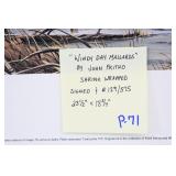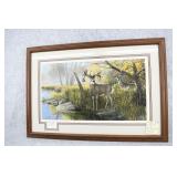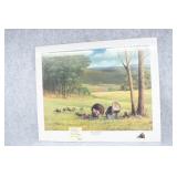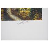 Prints #P71-80: P71. Shrink Wrapped Print “Windy Day Mallards” by John Pritko – Signed & #129/575 – 23 ½” Wide x 18 ¾” Tall P72. Shrink Wrapped Print “On the Trail” (Turkey) by Dan Christ – Signed & #18/600 – 28 ½” Wide x 19” Tall P73. Shrink Wrapped Print “Golden Dawn” (Whitetail Buck) by Charles H. Denault – Signed – 28” Wide x 21” Tall P74. Unframed Print w/Portfolio & Stamp “Hillside Takeoff” 1981 PA Wild Turkey Stamp by Ned Smith – Signed & #1070/1500 P75. Matted & Shrink Wrapped Print Ducks in Flight by Wiltrid Bailey – 30” Wide x 24” Tall P76. Framed Print “Old Mossy Horns” by Ron Van Gilder – #1014/9500 – Signed by the Artist w/Remark P77. Unframed Print “The Hanson Buck” “Boone & Crockett Typical World Record Score: 213 5/8” “The Legends-World Record Whitetails” by Ron Van Gilder – #1166/9500 – Signed by the Artist P78. Framed Print “Hole in the Horn” “Boone & Crockett Score: 328 2/8” by Ron Van Gilder – #1014/9500 – Signed by the Artist w/Remark P79. Unframed Print “Hole in the Horn” “Boone & Crockett Score: 328 2/8” by Ron Van Gilder – #1166/9500 – Signed by the Artist P80. Framed Print “Deer in Birch Woods” by Rusty Frentner