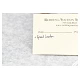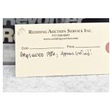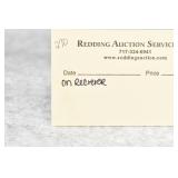 Redding Auction Service Inc. reserves the right to hold any or all merchandise purchased by personal check until the check has cleared the bank. If shipping is requested/required by the purchaser, all packing and UPS/USPS shipping charges will be paid prior to shipping. Forms of Payment Accepted for Purchases: CASH or PENNSYLVANIA CHECKS OUT OF STATE CHECKS WITH PRIOR APPROVAL MC/VISA/DISCOVER/AMEX ACCEPTED (A 4% ADMINISTRATIVE FEE WILL BE CHARGED) YOUR BIDDING ACCEDES YOUR ACCEPTANCE OF THESE CONDITIONS OF SALE.