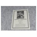 Prints #P1-10: P1. Framed Double Matted Print “Dutch Country Bluebirds” by Ned Smith – 1984 – #421/600 – Signed by the Artist P2. Framed National Wild Turkey Federation Stamp & Print by Ken Carlson – 1979 – #73/100 Artist Proof – Signed by the Artist P3. Framed PA Game Commission 25th Anniversary of Duck Stamps – 1983-2007 P4. Framed Double Matted Print “Mourning Doves” by Nancy Howe (1991) – C/E 27 of 50 – Signed by the Artist P5. “Tomorrow’s Hunters” Framed Print by G. LaVanish – Celebrating 50 Years of Hunter Education in PA, 1959-2009 – Artist Proof #10/50 P6. Framed Print “Ring-Necked Pheasant” by L. Ramer P7. Grouping of PA Game Commission Items Including: 1985 Working Together for Wildlife-PA Game Commission-Bobcat 1985 Patch, Working Together for Wildlife-PA Game Commission-25 Years Patch, 1 PA Game News July 2000 Ned Smith Cover (Elk) & 1952-53 Indoor Rifle Improvement Award P8. Framed Print “Big Woods Bobcat” by Ned Smith – #93/600 – Signed by the Artist – Selling w/Jan. 1985 PA Game News Magazine Ned Smith Cover P9. Unframed Print “The Last Inspection” by Dale Gallon – #25/950 – 22 ½” Tall x 31 ¼” Wide P10. Framed Picture “Pride of Erin” (Brooks Brigade) by Dale Gallon – #1017/1500 – 23” Tall x 41” Wide