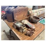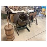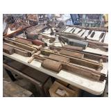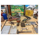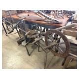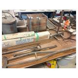 Crocks/ clocks/ blue jars/ porcelain Lions sign/ old tools/ cast iron pans/ milk cans/ 1970’s playboy collection/ race car parts- tires- wheels/ corn cycle/ neck yokes/ crosscut saws/ wooden chairs/ ice tongs/ wooden advertising boxes/ milk bottles/ Windsor metal ice box/ Hoosier/ horse drawn planter/ butter wood churn / wood planes/ beam augers/ yarn winder/ wagon seats/ chuck wagon food box/ lard press/ cobblers bench/ buck saws/ cow poke/ ice saw/ straw cutter/ hand si/ grain cradles/ prints/ posters/ holiday decor/ snow shoes/ coolers/ heated outdoor chairs/ stadium seats/ advertising tins/ wood clamps/ quilt/ kerosene planters/ wash boards/ hay-hog hooks/ crock bowls/ buggy wagon jacks & brakes/ scales/ leather cutout stamps and SO MUCH MORE!!! This is definitely a must see auction!!