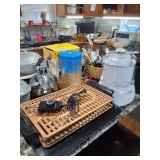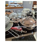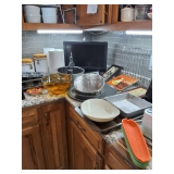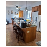 Items being offered include: Leather couch, leather sectional, leather recliner, oak corner cabinet, grandfather clock, desk and office chair, end tables, Sleep Number 360 queen size bed, dresser and chest, high top kitchen table with four chairs, two sets of bar stools, end tables, very nice ladies clothing and coats, shoes and purses including several Coach bags, kitchenwares, small kitchen appliances, yard tools, air compressor, patio table with chairs, yard ornaments, and more! |