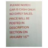 *****CASH ONLY****ALL SOLD AS IS. ALL SALES FINAL . LOADING IS BUYER'S RESPONSIBILITY. ALL ITEMS MUST REMOVED BY 1:00PM ON SUNDAY JANUARY 18TH.