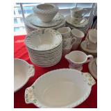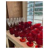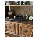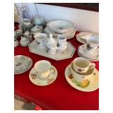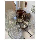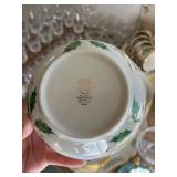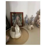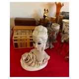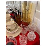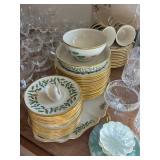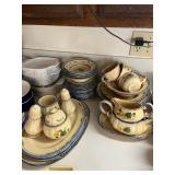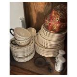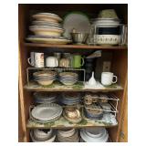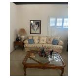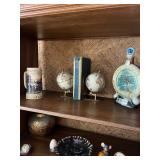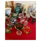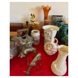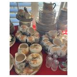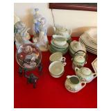 Miller standing grandfather clock Various vintage lamps Porcelain figurines Detailed ornate end tables Vintage floral print sofa Ornate wooden/glass coffee table Porcelain animals Art Vintage vases Frosted 6 tulip standing lamp Mantle clocks Globe bookends Artwork Pottery, cookie jars, ginger jars, metal sculptures Vintage jewelry Vintage linens Vintage clothing Vintage dishware: Metlox calif. u.s.a Vintage china hutch Vintage crystal/glassware Vintage CorningWare Lovely vintage stemware/goblets in colored glass Frigidaire refrigerator Sets of dishes, mugs, cups Washer and dryer