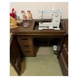 Collection of vinyls Vintage sewing table with sewing machine Vintage trunk Vintage chairs Samsung tv Vintage towels Recliners Faux plants Small kitchen appliances Barware Fine China Waterford Crystal Wall decor Royal vintage type writer Schwinn blue bicycle x-tra lite Medical wheelchairs Tools
