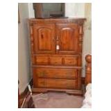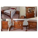 1023 Bedroom Set. Cannonball Bed, Dresser with Mirror and Shelves, Gentleman's Chest, 2 Nightstands.