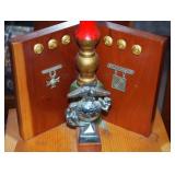 1179 Vintage Bowling Trophy won in Hawaii, In Memoriam Folk Art Shrine, Military Drawing, Photographs of Boxer Carmen Basilio