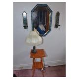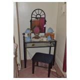 1071 Metal Vanity with Decorative Items and Vintage Lamps