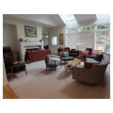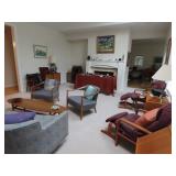Superb Mid Century Modern Pristine Estate Sale Highlights: Entry and Hall: Bowfront petite console credenza attributed Barney Flagg for Drexel 1957 Original painting, abstract, D. Dunn Ceramic monumental Studio potter signed "Bawk" Ottoman Collection by Nour Native American Navajo rug Family Room: Odd Knutsen Luna Chair and Ottoman 2 Ekornes Stressless Consul Recliners w/ 1 ottoman “Chelsea High” Scan Design Jack Cartwright for Founders walnut and cane cabinet “Perspective” Line Yei Navaho Rug Brushed Nickle adjustable Industrial floor lamp Japanese wood block Hiroshige “Plum Park in Kameido” Oak Press-back swivel chair Nourison Collection wool rug Philip Lasz Limited Edition, Joyce Snyder pen/ink Knabe Console Piano 1956 Altalena counter-balance table lamp by Luxo Taylor Instruments “weather station” Kitchen Dining Room Amish Whirligig Popcorn Popper, Farberware, Blue Cornflower Corning ware, Regal Bread Machine Extension worktable, ice cream maker, many potted orchids and beautiful plants Marcel Breuer Chairs (4) Bauhaus made by Knoll 2 Hardrock maple/beech small desks 2 Waterford : Peace” 2000 Whitehouse Champagne Flutes Belleek, Mid C Pyrex, so much unique kitchenware, Junghans Clock Michel Nourot Art Glass vase “Scarlet Nova” Willy Schou Anderson Danish Modern Model 61 Rosewood Chairs 8 side 2 armchairs 1989 Purchase, Teak Dining Table Danish Modern Interform Collection Danish Modern Rosewood Sideboard by John Stuart Indo Shirvan Wool large rug Limoges Ceralene Raynaud 7 pc place setting for 12 with serving fine china Franciscan “Autumn Leaves Stoneware, Autumn Harvest Cinderella Mixing Bowls Refrigerator sets, Royal Crown Derby, Japanese pigeon blood Ando Jubei ginbari vase 1950-1970 Chinoiserie Black lacquer Japanese octagonal chest, Amano oxblood vase Petit Period black wire 3 tier display shelf Kimberly Queen Fern, Squamiferum Philodendron, Red Anethum, Peace Lily wonderful plants Silk Shoko Brocade table runners Tatsumura Textiles woven in AD667 Asuku design Art Deco WMF Wiedmann glass bowl “Schaum” (foam) effect Studio Blown Art glass abstract one of a kink Sunburst bowl attrib. Richard Maxwell Steuben crystal bowl by John Dreeves 1938-1972), signed Studio pottery and art glass, KPM porcelain Joseph Turner “Free Me” Caged puzzle, sterling holloware Mid-Century framed art prints so much more, see photos! Mid Century narrow drop leaf figured wood dining table with metal legs possible attrib. Rudolf B Blatzel Living Room Limited Editon of 980 Vincent Van Gogh “Thatched Cottages” Atelier American Brushstrokes Danish Modern Teak Wall grouped Secretary desk, cabinets, and chests-G-Plan Fresco 1987 H&H G-Plan Fresco Bookcase/media cabinet, and low bookcase Black metal period torchiere lamp “Surf Sofa” attrib. Heritage by Henredon 1957 purchase, period Italian upholstery “Surf” Coffee Table signed “Heritage “by Henredon 1957 purchase Ib Kofod Larsen style 1960s Heritage by Henredon Pair of Lounge armchairs “Draper” Chair designed by Milow Baughman (1923-2003 for the Thayer Coggin Co. 1967 purchased Brigger Furniture by Klein Design Matteo grass “Relax the Back” Comfort Chairs with ottomans Jack Cartwright for Founders Cane front Walnut Cabinet (2) purchased 1957 Danish Modern Rolling multi-function table by DRDR Furbo Denmark 1970s Baccarat Zodiac Boar, NASA Galaxy Commemorative Sphere Donald Poland for Stueben Mid Century abstract acrylic sculptures, Runotadler, Dichroic Spires laminated glass sculpture by Michael O’Keefe (1947-) Gumps bronzed cat sculpture doorstop, Japanese lacquer ware, beautiful Aizu tray Rare “Light Pipe” Peter Drobney for Stueben from Corning Museum of Glass Mid Century artist signed Cityscape Study/Office Paines Furniture Desk, matches set in master bedroom 1951 purchase Herman Miller Ergon swivel “task” office chairs (2) 1970 Gerald Thurston for Lightolier Black Boomerang Desk Lamp Danish Modern glass front Low bookcase attributed to Harry Ostergaard 1960s for Randers Mobelfabrick Haywood Wakefield pair of MCM nightstand end tables Skyliner 3568, original wheat finish Cal Lighting Andros Collection brushed steel table lamps with white hardback shades 2 oak barrister bookcases, world maps and period world globe Jessica Mitchel and Helen Siegl limited editions 8 drawer chest/ credenza 1960s Stanley Furniture “Finnline” Collection with signature bullseye pulls Arrow Bertha Custom Sewing Machine Cabinet with machine air lift, Kenmore Elite portable sewing machine Master Bedroom Danish Modern floating desk/vanity table purchased from Workbench Furniture Co. in NYC 1967 Designer Clothing and Textiles Desktop teak organizer matches desk Danish Modern Gentleman’s Dresser 1967 from Workbench Furniture Chair vinyl swivel desk/counter chair 1960 Uno & Osten Kristianson for Luxus, Vittsjo, Sweden 1960s Round dresser top mirror Japanese tapestries, “Fireworks at Ryogoku” Hiroshige woodblock Kellam Studios signed Jewelry box Sprague and Carleton maple master armchair and scalloped front bookcase MCM Danish Modern trundle bed Abstract Art 1970s wall sculpture signed Kisch (1941-2014) Signed Print Still life by Kazumasa Nakagawa (1893-1991) One-of-a-Kind wool rug by Ethan Allen (cost $3845 purchased 2003) Bedside Lamp Early mid-century replica of Chinese Bell/ Zhong, Swing arm table lamp Pair twin Sleigh beds from Fletchers by Vermont Precision (2002) plaque signed Ethan Allen 2002 nightstand Garage and Outside Banana Scan Design Teak Bench, Heron MCM Garden Sculptures, Plants and pots 1940-1950s original H/D Model Coca-Cola Airline Airplane Cooler Lots of hand tools, 2 storage cabinets, Craftsman work bench , Stihl Electric Edge Trimmer like new, Drill Press, Original Eames Fiberglass Chair (will be moved inside) Luxo Magnifier Lamp, MC cross stitch sampler Bendix Family Radiation Measurement Kit 1960, White enamelware So much more! Just FYI This lovely home will also be for sale. |