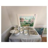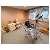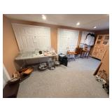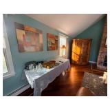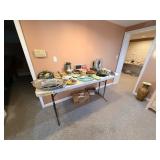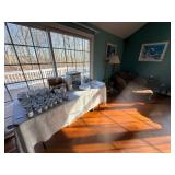 It features furniture, kitchen items, artwork, holiday decor, fireplace items, camping items, kitchen table and chairs, dining table and chairs, armoires, sectional, silk sofa, accent tables, home decor, rugs, small kitchen appliances, curio cabinet, Baccarat, Noritake, Faberge, Waterford, vintage cooking magazines, clothing, books, rugs, an elliptical and much more......