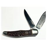 Lesh Houck Auctioneers is offering the first of many auctions with several collections that had been handed down through generations. Featuring Pocket Watches, Vintage Knives, Case XX Display, Tobacco Tins, Character Watches & Watch Fobs. Some pocket watches are rare, some date back to 1800's, some stunning, some not. This is a collection that started back in the 1800's -1900's. They have not seen day light for decades. One family member was a clock and pocket watch collector and was also a Clock Smith by trade. Don't miss this opportunity to own part of this amazing collection. This is only one of many auctions we will be having from this estate. Preview is at request only. Contact (717) 513-5873 to set up an appointment. 1 Voss Cutlery Co. Knife Voss Cutlery Co. (double stamped) Germany Knife. Very clean. 2 York - Dutch Barlow Pocket Knife York - Dutch Barlow Pocket Knife. York Cutlery Co. Solingen Germany. Has visible rust. 3 Camper Knife Camper multi tool Knife. The Ideal U.S.A. Has visible rust. 4 Y.C.C single blade knife Single blade knife marked Y.C.C Stainless Steel Japan. 5 JR Othello Solingen German Trapper Knife Anton Wingen JR Othello Solingen Germany Knife w/ Sheath. Blade marked, Original Trapper Knife. 6 Moroney Wine advertising pocket knife Multi use pocket knife w/ blade & pen, advertising Moroney Wine "Quality since 1845". Mother of Pearl handle. Blade marked, Imperial US Prov. R.I.A. 7 VOSS CUT. CO. Solingen-Germany Knife VOSS CUT. CO. Solingen - Germany stainless steel fixed decorated blade knife with a stag handle and sheath. 8 Anton Wingen Jr. double sheath knife set Rare Anton Wingen Jr., Solingen - Germany Double Sheath knife set w/ Stag handle. 9 Voss Cut. Co. hunting knife VOSS CUT. CO, Solingen - Germany hunting knife w/ Stag handle and fixed blade. 10 Small USA knife w/ sheath Small USA fixed blade knife with sheath. 11 VOSS CUT. CO. knife w/ stag handle VOSS CUT. CO., Solingen - Germany knife w/ Stag handle and fixed blade and sheath. 12 GUST & WILHSTOCK pocket knife GUST & WILHSTOCK multi use pocket knife. Solingen - Germany. 13 Barlow pocket knife 13. Imperial USA PROV. R.I.A Barlow double blade pocket knife. 14 Davy Crockett Pocket Knife Imperial PROV. USA Walt Disney's Davy Crockett pocket knife & can opener combo. 15 Colonial Prov. R.I. knife w/ sheath Small knife w/ sheath marked COLONIAL PROV. R.I. 16 CASE XX Pocket knife CASE XX USA 62131 multi blade pocket knife etched with an Indian in a canoe. 17 CASE XX USA pocket knife CASE XX USA 6120 SS single blade pocket knife in original RUGER box & warranty. 18 Special Edition RUGER / CASE Knife & Coin set Rare Limited Edition RUGER / CASE XX Pocket Knife & Coin set. The RUGER 1 Million Gun Challenge Knife & Coin Set to commemorate 1 million + firearms sold between 2011 and 2012. These typically made it to distributors and employee's hands only. Over a... 19 Commemorative B.O.P Elks Knife LUNAWERK Solingen Germany B.O.P Elks commemorative duel blade knife. 20 KAYWOOD Pipe Knife KAYWOODIE Stainless JAPAN Pipe knife. 21 Imperial PROV USA single blade pocket knife Imperial PROV USA single blade pocket knife w/ mother of pearl handle. 22 Richards Sheffield pocket knife Richards Sheffield England, 2 blade pocket knife. Front side shows 'Houses of Parliament'. Back side is Mother of Pearl. Does show age, discoloration and ware. 23 VOSS CUT CO. MULTI USE POCKET KNIFE VOSS CUT CO. multi use pocket knife. 24 USA Coca~Cola Pocket Knife USA Coca~Cola Pocket Knife. Advertising 'Drink Coca~Cola. Some discoloration on blade. 25 Imperial USA pocket knife Imperial USA multi tool pocket knife. 26 Germany Pocket Knife Made in Germany, 2 blade pocket knife. Some tarnish on blade. 27 Made in the USA Coca - Cola Pocket knife Made in the USA Coca - Cola 1882 Knoxville World Fair pocket knife. Some wear on handle blade. 28 Mercator Indiana single blade knife Mercator Indiana single blade knife, w/ black cat & K55K. 29 Bonsa Solingen Germany Pocket Knife Bonsa Solingen Germany 3 blade Pocket Knife. Has staining on the blades and some ware on handle. 30 Made in Germany Fish Knife Made in Germany Fish Knife. Some staining/ rust spots on blades. 31 Case XX USA Razor Barlow Knife Case XX USA 62009R Razor Barlow Knife. The images make the knife look rough however, it's not as bad as it appears. There are marks & surface rust visible on the knife. 32 Bo'ker Solingen Germany Knife Bo'ker Solingen Germany Alemania Hunter Knife. Visibly shows surface rust and wear to the blades. 33 REAL GERMANY Pocket Knife REAL GERMANY single blade pocket knife. Some wear on handle, some markings on the blade. 34 Duel use knife made in Germany Possibly a 'Pipe smoker's knife w/ knife, tamper tool & other blade. Stamped, Germany. 35 Small duel use pocket knife Duel use pocket knife, scissor combo stamped, P.I C stainless JAPAN. 36 Small Pocket Knife Small 2 blade pocket knife PAT. NO3, 2037943? Staining or pitting showing on both blades. 37 VOSS. CUT CO. Solingen German Knife VOSS. CUT CO. Solingen German mutli use knife. 38 Small single blade knife USA small single fixed blade knife w/ sheath. 39 ED. WUSTHOR multi use knife ED. WUSTHOR multi use, decorative knife. Stamped, Solingen Germany. 40 2 miniature pocket knives 2 miniature pocket knives. The smallest of the two does have a crack on both sides. 41 CASE XX KNIFE SAMPLES COUNTER DISPLAY CASE CASE XX Knife Display case. Rare to see piece. Shows distress & scratches on the paint. Has original CASE Samples tag (scratches on the tag). Has 1 key. It opens and locks from the back side. Made for a counter top display in stores, to show the Case... 42 1900 Capelle Hardware Co. Cutlery & Guns 1900 Capelle Hardware Co. Cutlery & Guns Letter Head Bill of sale. No tears, or holes. Shows fold marks. For the age it is in remarkable condition. 43 Tobacco tins (2) Edgewood High Grade Plug Slice Chewing Tobacco Tins. 44 Cigarette Pack Cases (3) Cigarette Pack Cases. Chesterfield, AA Hall Restaurant & Night Club, Hong