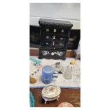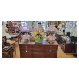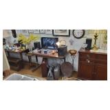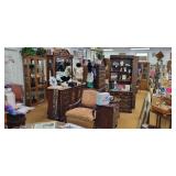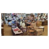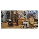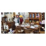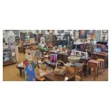 Lots of great furniture, jewelry and décor. Items include, but are not limited to... Arm Chairs, antique dressing table, mirrors, flat TV’s, TV stands, wardrobe, microwaves, book shelves, dining tables & chairs, computers, dressers, night stands, chests of drawers, desks, Dr’s floor scale, fire place tools, Commercial freezer, file cabinets, wall art, china cabinets, curio cabinets, LP vinyl records, end tables, coffee tables, area rugs, ice buckets, rocking chairs, jewelry boxes, jewelry, baskets, floor lamps, home stereo equipment , cedar chest, knives, belt buckles, sofa/hall tables, ranch oak, lighters, unicorns, baker’s rack, Correlle Ware, Pyrex, milk glass, depression glass, Carnival glass, fish tank with stand, antiques and LOTS MORE!!!