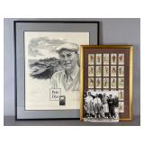 1928 Bobby Jones Wire Photo, Pete Dye Signed Print, and Copes Golfers Tobacco Reprint Set |