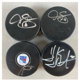 Henrik Lundquist, Kevin Klein, and 2 Derek Sanderson Signed Hockey Pucks |