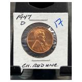 1947-D Lincoln Wheat Cent in Choice Red Uncirculat |