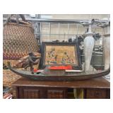 Basket Set with Carved Wooden Mask and Woven Trays |