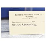 Redding Auction Service Inc. reserves the right to hold any or all merchandise purchased by personal check until the check has cleared the bank. If shipping is requested/required by the purchaser, all packing and UPS/USPS shipping charges will be paid prior to shipping. Forms of Payment Accepted for Purchases: CASH or PENNSYLVANIA CHECKS OUT OF STATE CHECKS WITH PRIOR APPROVAL MC/VISA/DISCOVER/AMEX ACCEPTED (A 4% ADMINISTRATIVE FEE WILL BE CHARGED) YOUR BIDDING ACCEDES YOUR ACCEPTANCE OF THESE CONDITIONS OF SALE.