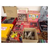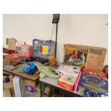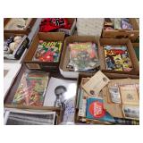 ITEMS TO BE AUCTIONED: BAYONETTES, COMPASSES, TOYS TIN TYPE, GAMES, JEWELRY, TOKENS COINS, PAPER MONEY, GLASS BALL, PAPER WEIGHT, DUMMY GERNADE, LIGHTERS, KNIVES, MARBLES, GLASS, REMINGTON CRATE, COMIC BOOKS, CAR MAGAZINES, VINTAGE MAGAZINES, WHIRLY GIG, HAWAIIAN SHIRTS, MOTORCYCLE SHITS, T SHIRTS, JERSEYS, COATS, BARBIE DOLL, BOWLING ITEMS, VINTAGE PHOTOS, LOTS OF OLD WAR PICTURES, WALL ART, MIRRORS, CAST IRON PANS, COMPOUND BOW, LARGE METAL PLATE, POST CARDS, VINTAGE BOARD GAMES, METAL DETECTOR, ARMY COT, TOOLS, TOYS, GAMES, HOUSEHOLDS, TOKENS, PYREX, GLASS, VACUUMS, TRAYS, COLLECTIBLES, KIDS TOYS, PAPER BACK BOOKS, OTHER BOOKS, ANIMALS, FIGURINES, BOX LOTS, AND MUCH MORE.