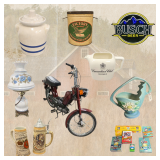 Large Collector & Estate Auction featuring a massive sports trading card collection (250,000+ cards) with material primarily from the 1970s–1990s, including Topps, Fleer, Donruss, Score, Bowman, and Upper Deck. The sale also includes vintage advertising and breweriana (including neon signage), pottery and stoneware, decorative ceramics, beer steins and barware, framed artwork, games and collectibles, furniture and storage pieces, garage and shop items, and a small motorcycle/moped-style bike. This is a discovery auction with items selling as-is, where-is. Condition varies. Buyers should rely on photos and inspection. Variety, volume, and opportunity define this sale. 10% Buyer Premium |