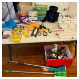 - Lot #51 - Lot of Various Household and Office Supplies Including Duracell Batteries, LED Bulbs, and Calculators