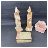 - Lot #288 - Vintage Hand-Carved Onyx Figures and Decorative Boxes